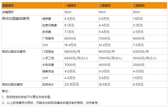 開家粥店投資一般需要多少錢?50㎡店投資8萬