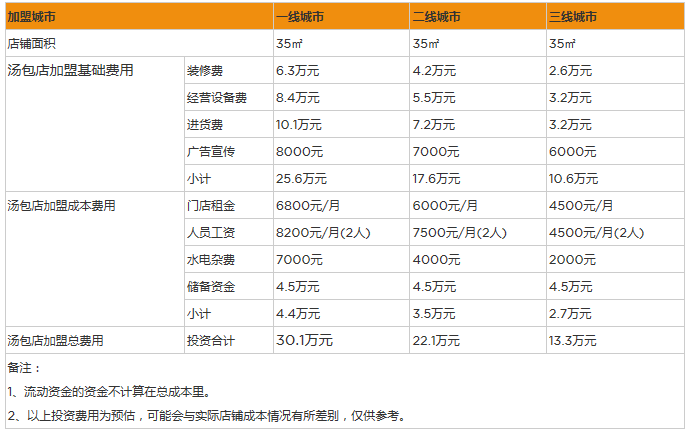 開家湯包店投資大概多少錢?35㎡成本預(yù)算花費(fèi)12萬元