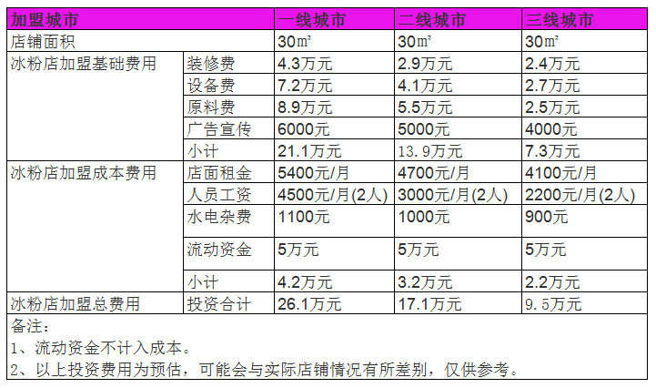開(kāi)家冰粉店投資一般需要多少錢?30㎡店鋪啟動(dòng)資金9萬(wàn)