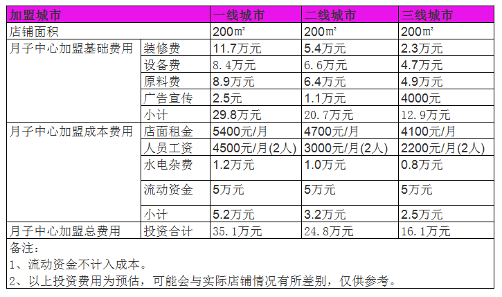 開家月子中心投資一般需要多少錢?35萬元開店數據分析