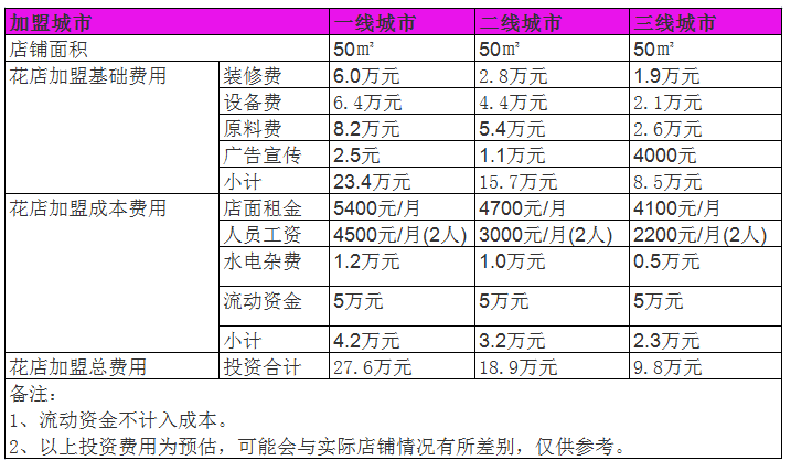 開家花店投資大概多少錢?50㎡成本預算花費9萬元