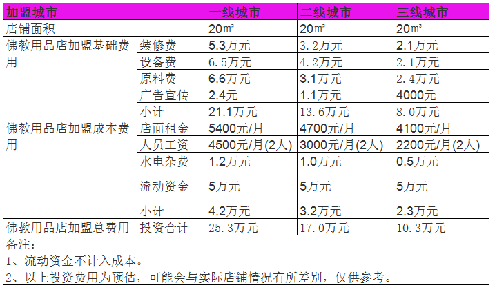 開家佛教用品店投資大概多少錢?20㎡成本預算花費10萬元