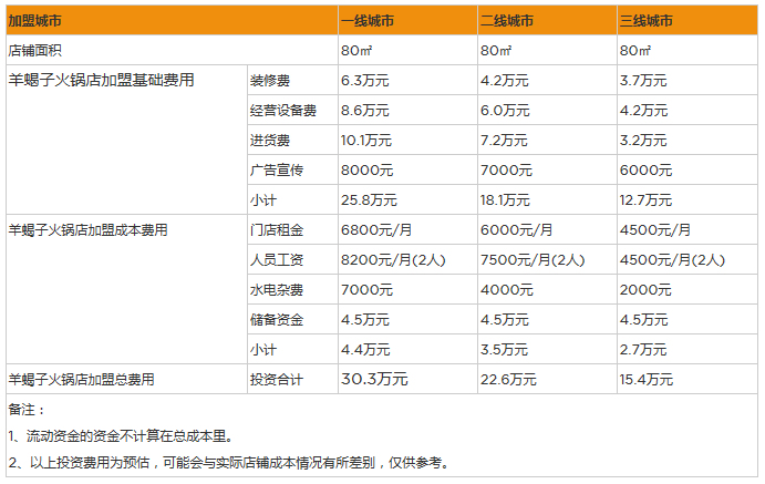 當然以上數據只是這家羊蝎子火鍋店的營業額,火鍋行業中毛利潤一般都在60%左右,也就是說一家200平米左右的羊蝎子火鍋店,一年的毛利潤在245萬元。再用毛利潤減去日常的開支以及員工費用、加盟費、房租費,計算得出開羊蝎子火鍋店一年的凈利潤在100萬元左右,再考慮一定的淡季和旺季因素,最終的利潤在六七十萬還是很合適的。(上述數據僅供參考)