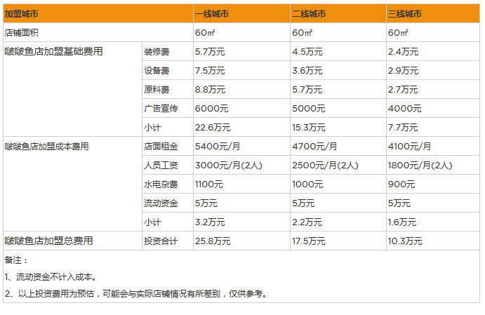 上面簡單的介紹了啵啵魚的店面開店成本大概在幾萬塊錢左右。這個費用是根據大多數人的一個預估值。當然也有一定的浮動空間,這和開店的城市和店面的位置以及規模有一定的關系,但是總體來說,開店的成本并不是很大。在資金有保障的基礎上,啵啵魚的總部實力也比較好,發展到現在,可以說已經取得了不錯的成績,深的消費者和投資者的認可。在這一點上投資者可以放心投資。