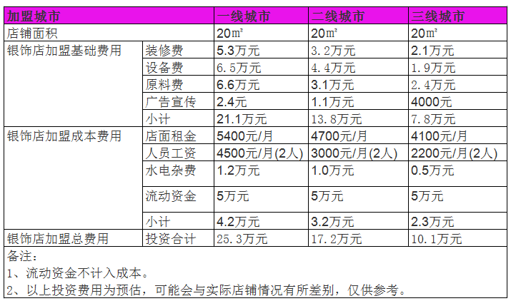 開家銀飾店投資一般需要多少錢?在三線城市開店投資10萬